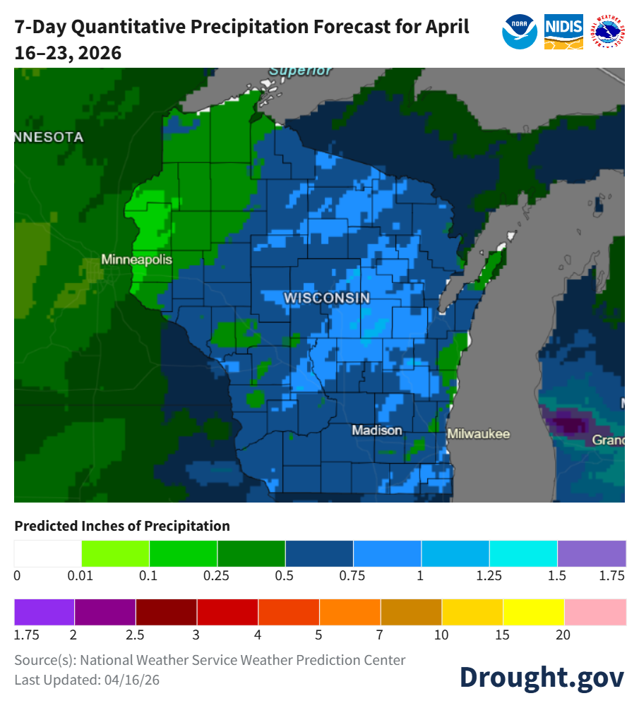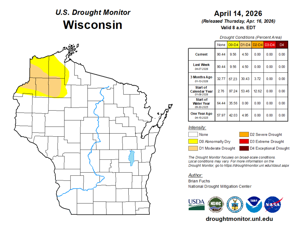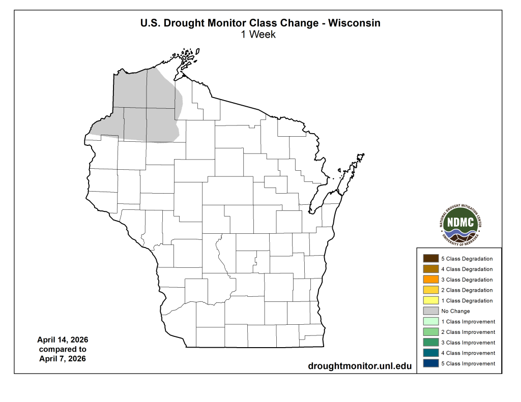 Wisconsin: No change from last week. Drought remains in some far northwest counties.