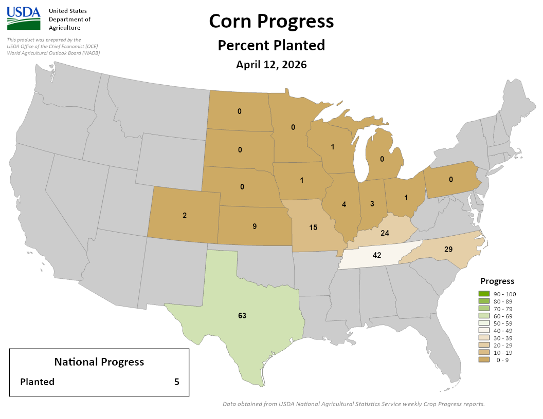 - Corn planting was 1 percent complete.