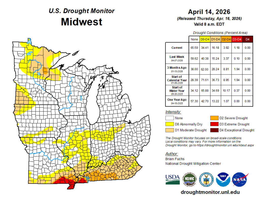 - There was no change in drought coverage or severity from last week. Drought remains in some far northwest counties.