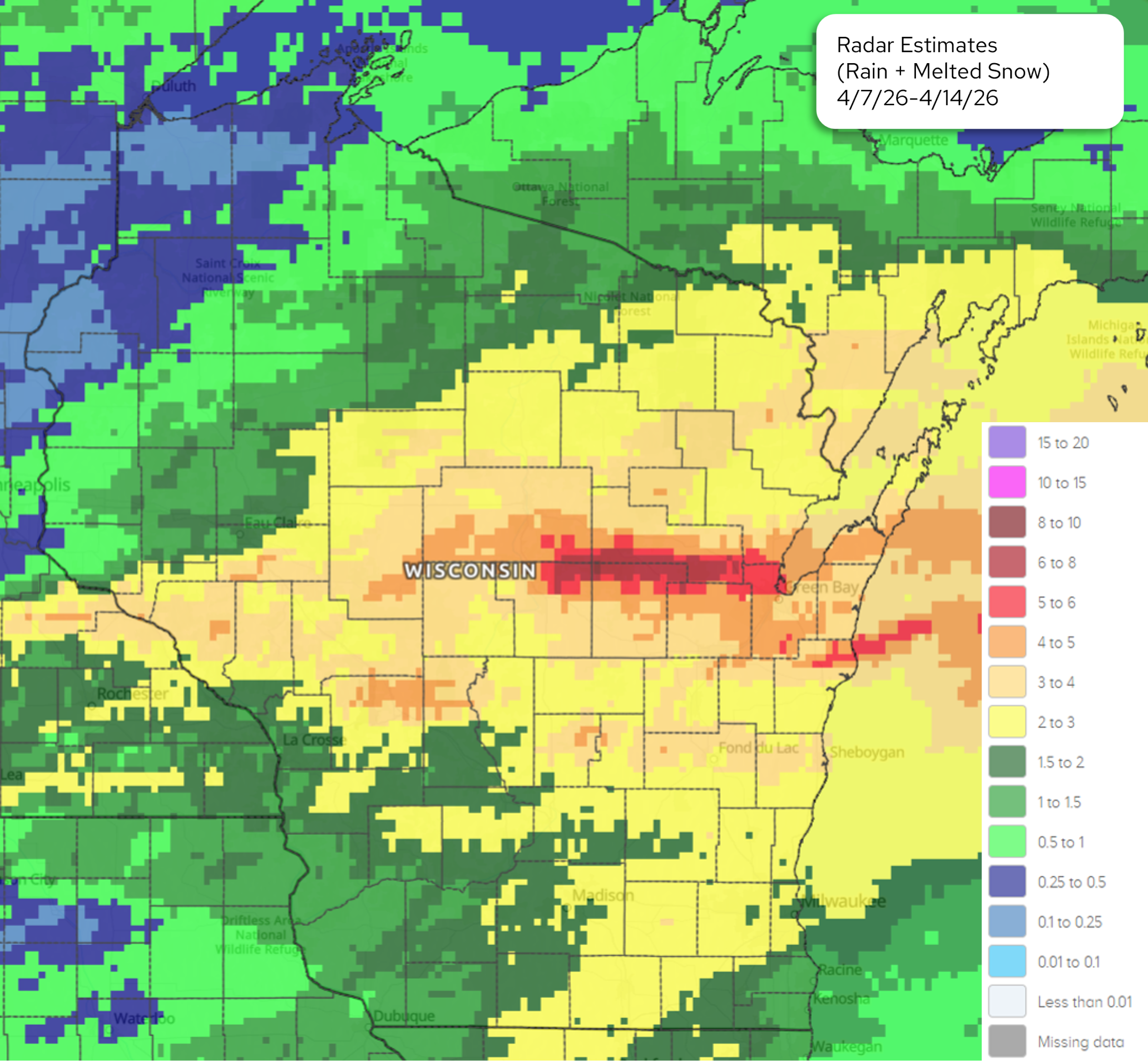 - April 15 & 16: another 1-3” fell across southern WI, with localized areas of 3-5”.