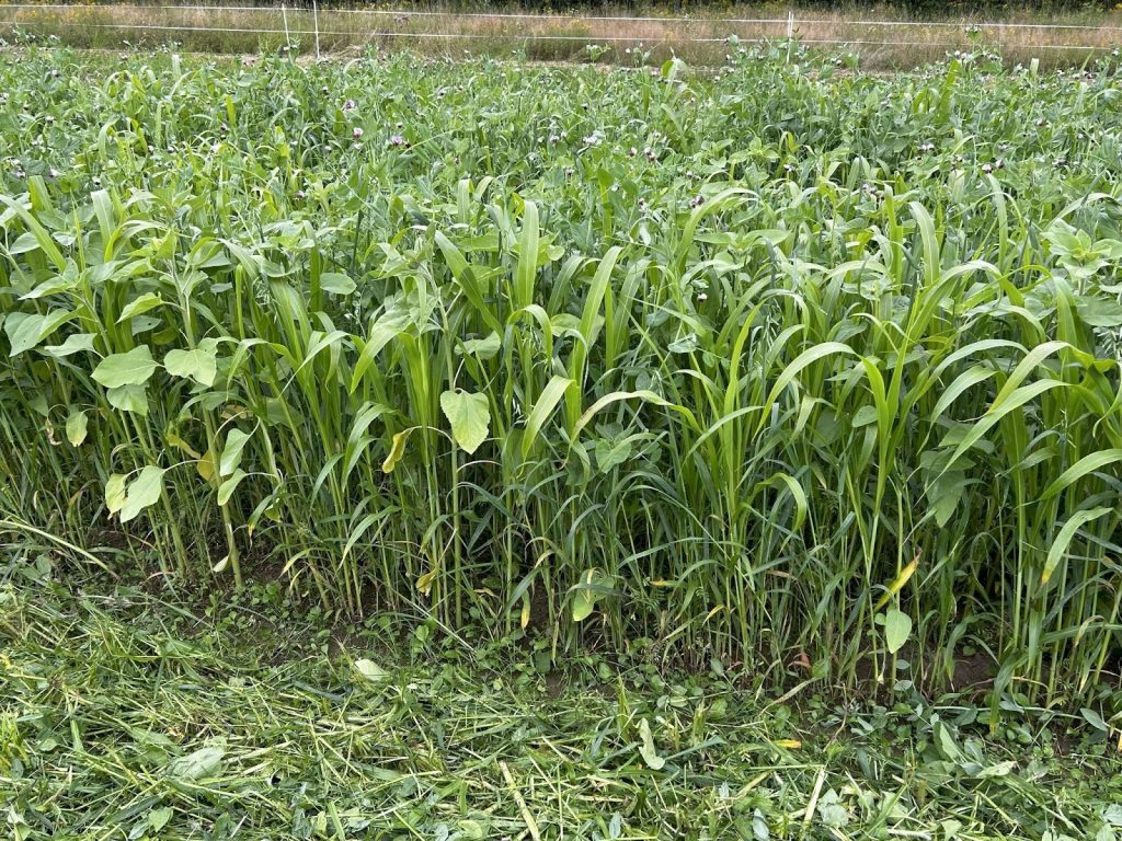 Figure 10. An early fall planting of winter rye, oats, peas, buckwheat, and vetch going into winter, with compost spread on top.