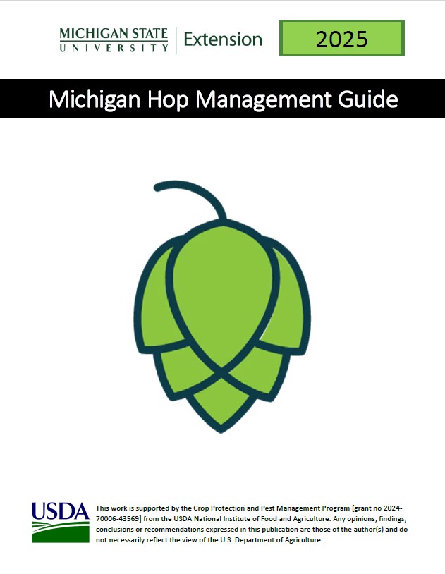 Michigan State University is doing breeding and agronomic research on multiple aspects of hop production. Current priorities include evaluating different cover crop treatments between rows and their affects on soil quality, soil nitrogen levels, hop leaf nitrogen and weed control. They are also comparing low-trellis systems for use with semi-dwarf cultivars to high-trellis systems by looking at yield, cone quality and market potential for organic hops.