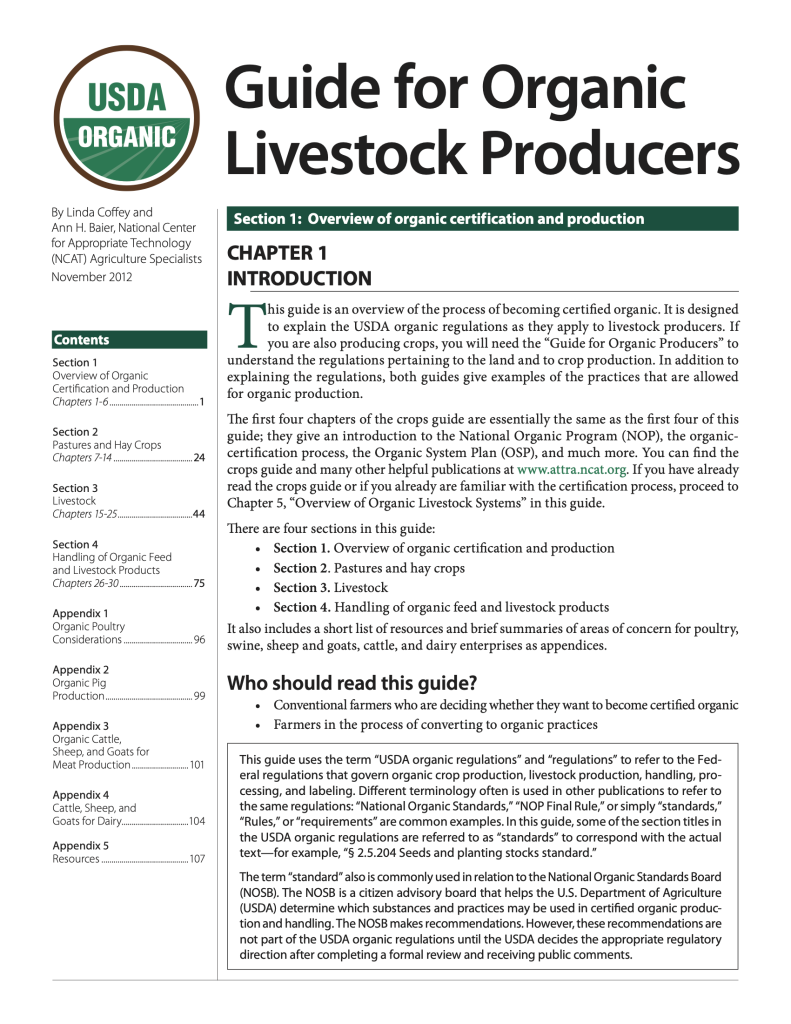 Guide for Organic Livestock Producers, USDA