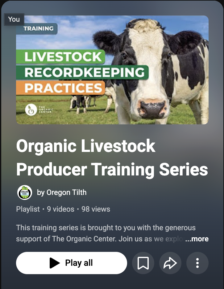 Organic Livestock Producer Training Series, Oregon Tilth