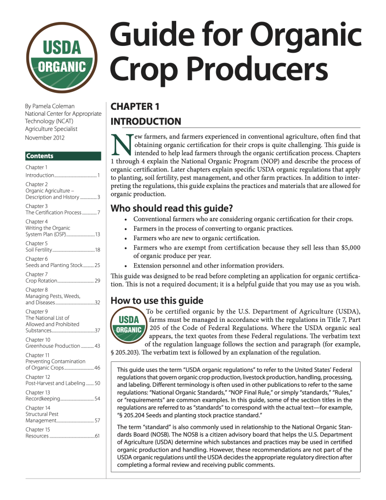 Guide for Organic Crop Producers, USDA