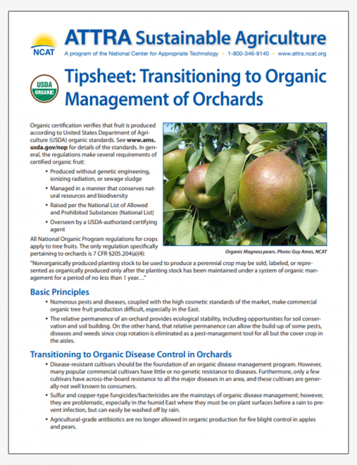 Tipsheet: Transitioning to Organic Management of Orchards, ATTRA