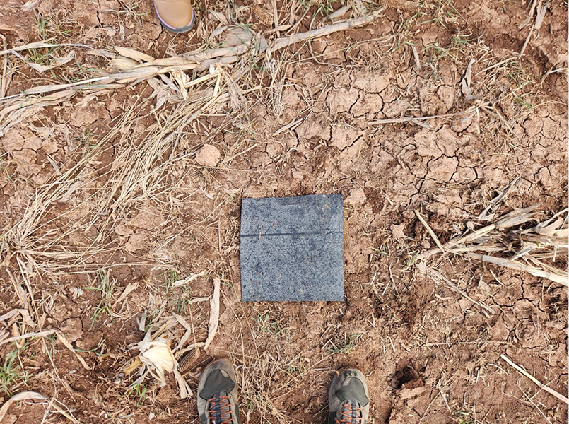 Place each trap flat on the soil. Move crop residue out of the way as needed. Put the trap 15 feet away from any field edges. Keep the five traps per field at least 15 feet apart from each other.